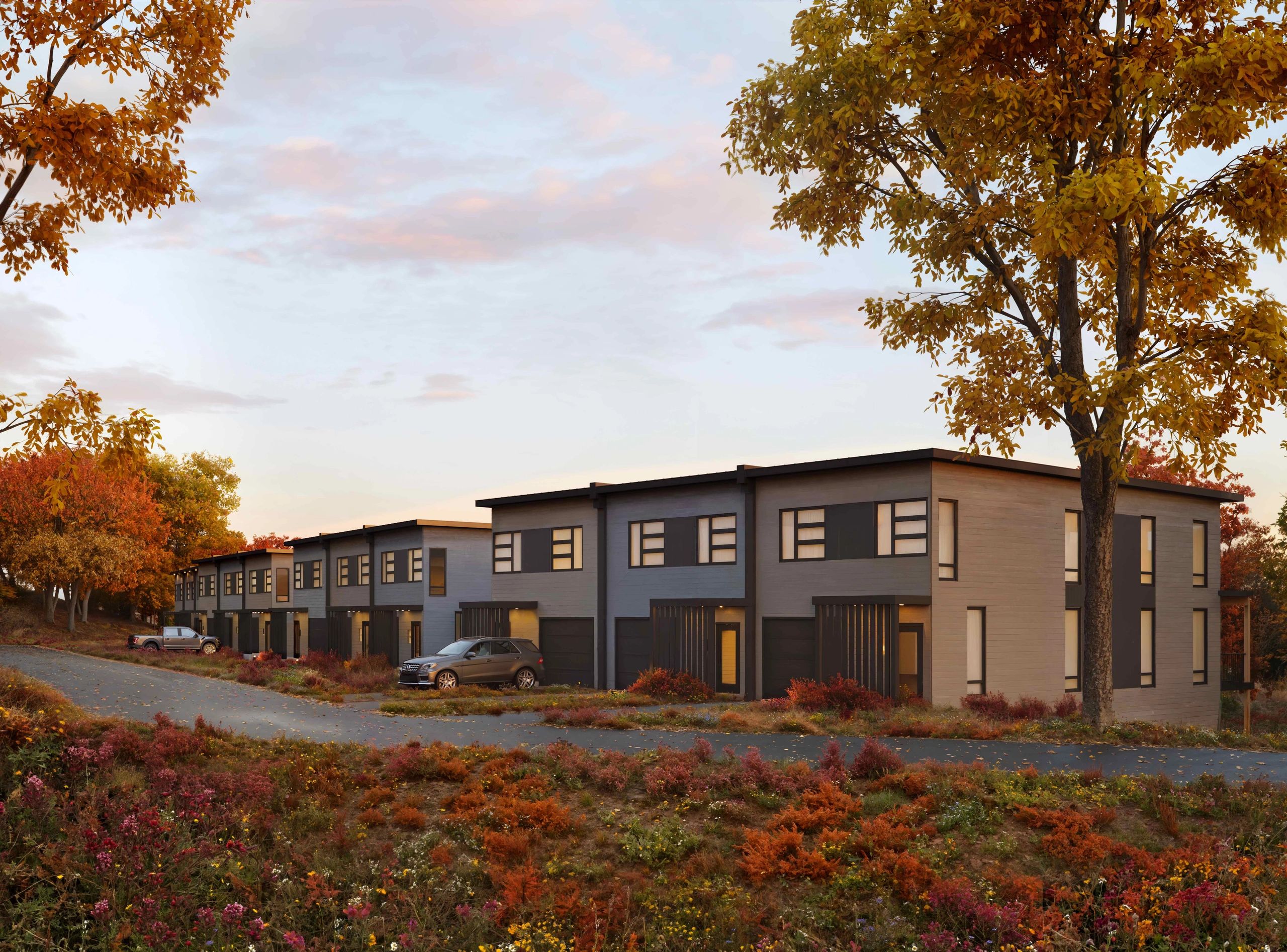 Le projet comporte quatre unités de centre et huit unités de coin d’environ 2,800 pi2 chacune et d’un garage de bonne dimension. Le choix des matériaux de qualité supérieure a été réfléchi de manière à assurer un design contemporain harmonieux ainsi qu’un maximum de durabilité. Sur trois niveaux, se retrouvent quatre chambres à coucher, trois salles de bain complètes, une salle d’eau, une vaste salle familiale et un « mud room ». Et, chaque unité est offerte avec un sauna et foyer intérieurs.